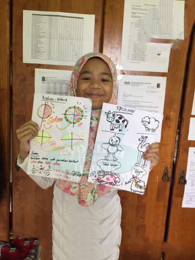 “Sesi pembelajaran yang selesa, mudah difahami dan ceria, pandai tarik perhatian pelajar tika hilang semangat dan mood bosan, jika ada sebarang kemuskilan, senang untuk berkomunikasi secara terbuka antara cikgu,murid dan maknya”